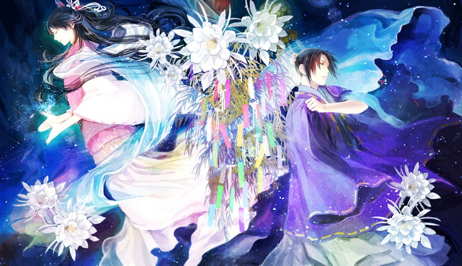 Nelle lande celesti vi era una fanciulla chiamata Orihime, ella era una ragazza molto seria che impiegava tutto il suo tempo lavorando e tessendo la tela per confezionare sontuosi vestiti agli dei.