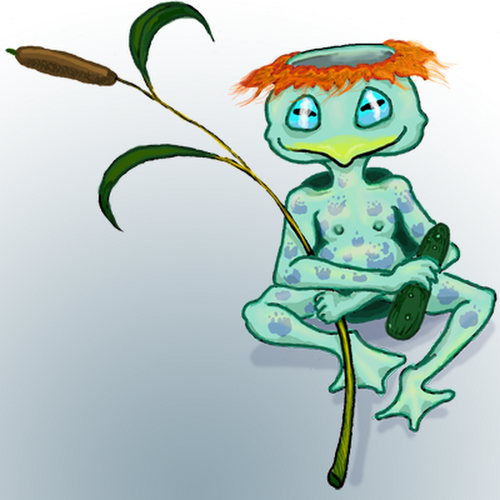 piedi palmati e una depressione in cima alla testa, con attorno dei capelli,